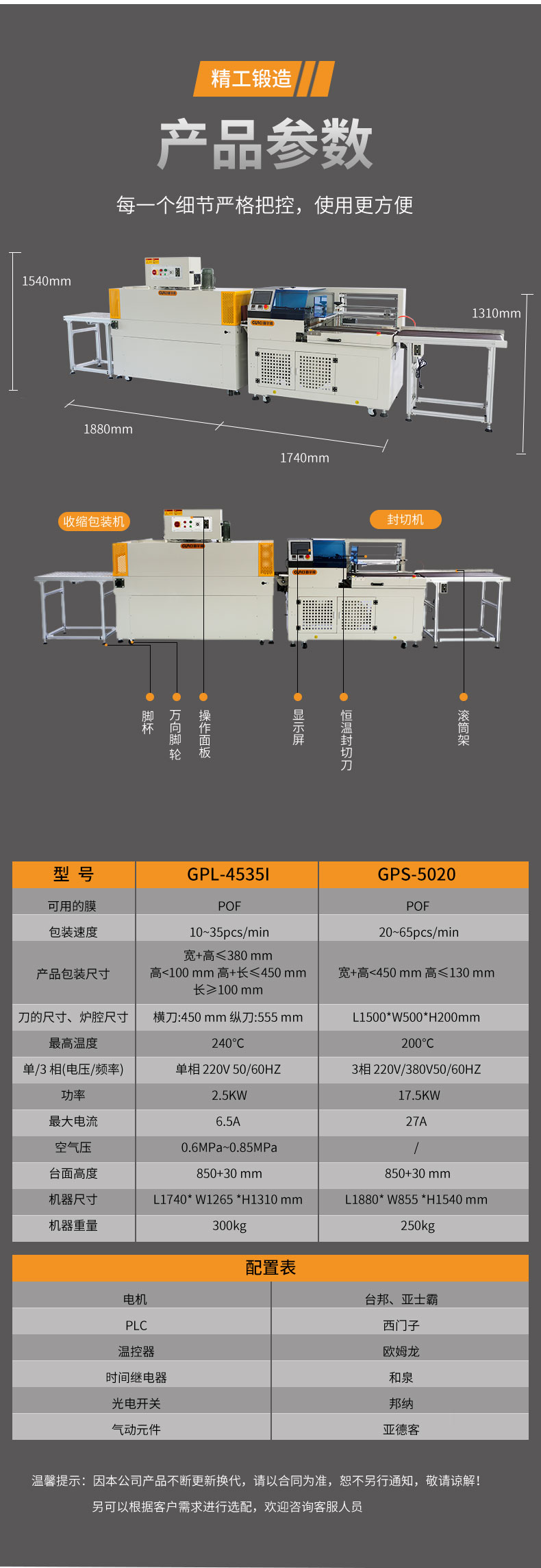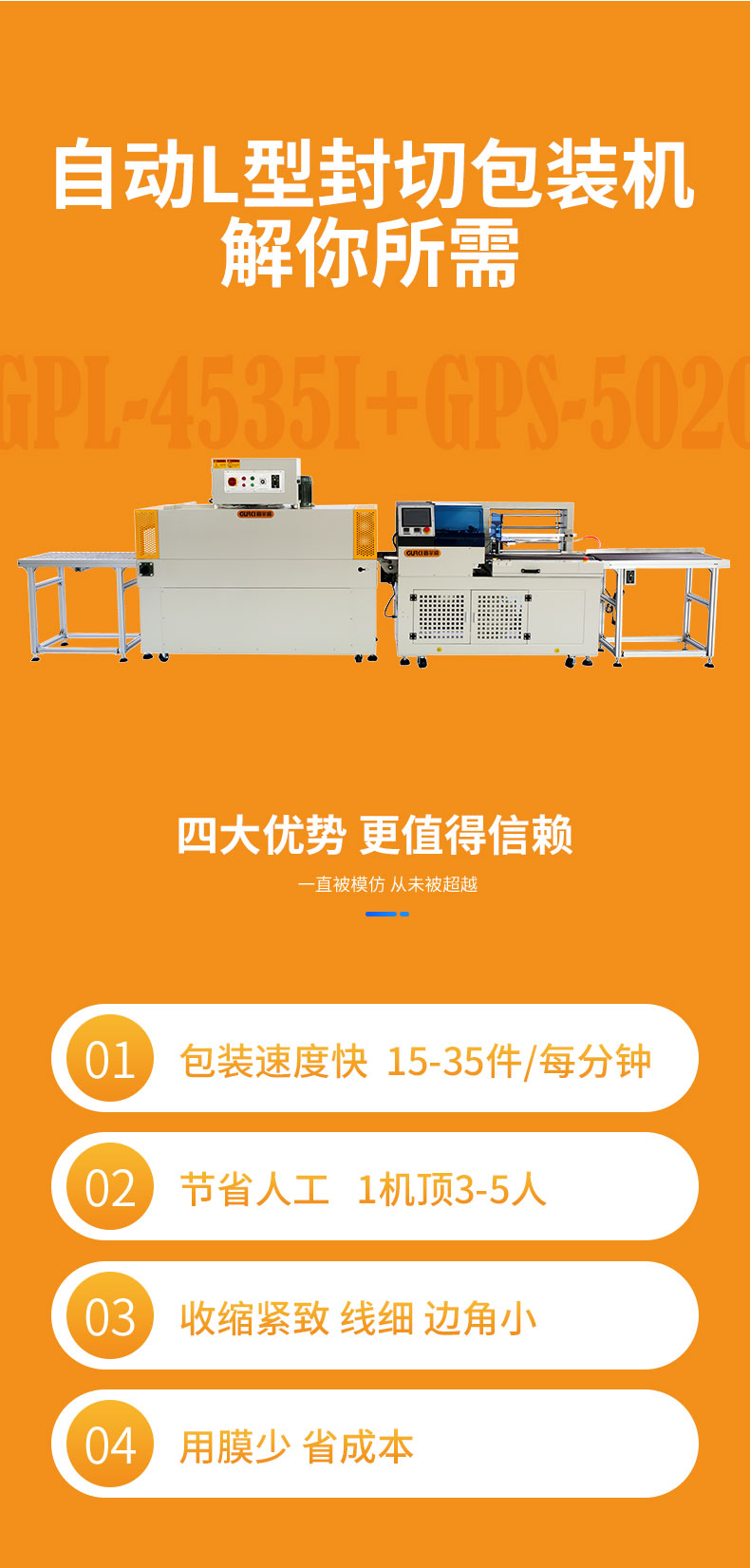 自動L型封切收縮包裝機是一款針對多規(guī)格產(chǎn)品包裝專門研發(fā)生產(chǎn)設計的自動無人化操作的L型封切機,自動送膜打孔,自動套膜封切,只需手動調(diào)節(jié)導膜系統(tǒng)以及手動調(diào)節(jié)進料輸送平臺,封切線細、居中,包裝效果平整美觀,適用不同寬度及高度的產(chǎn)品,廣泛用于化妝品、醫(yī)藥、食品、軟件、飲料、煙草、日化、汽車、線纜、電子等大批量產(chǎn)品收縮包裝。