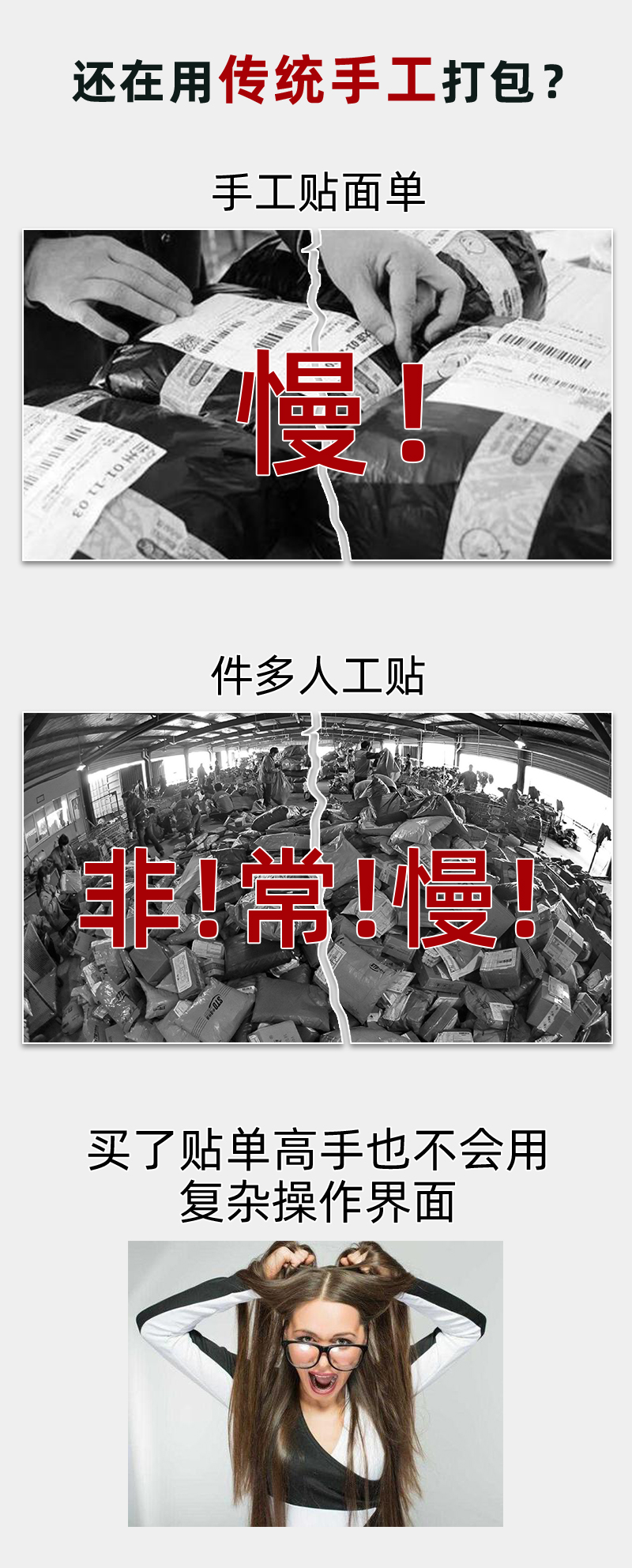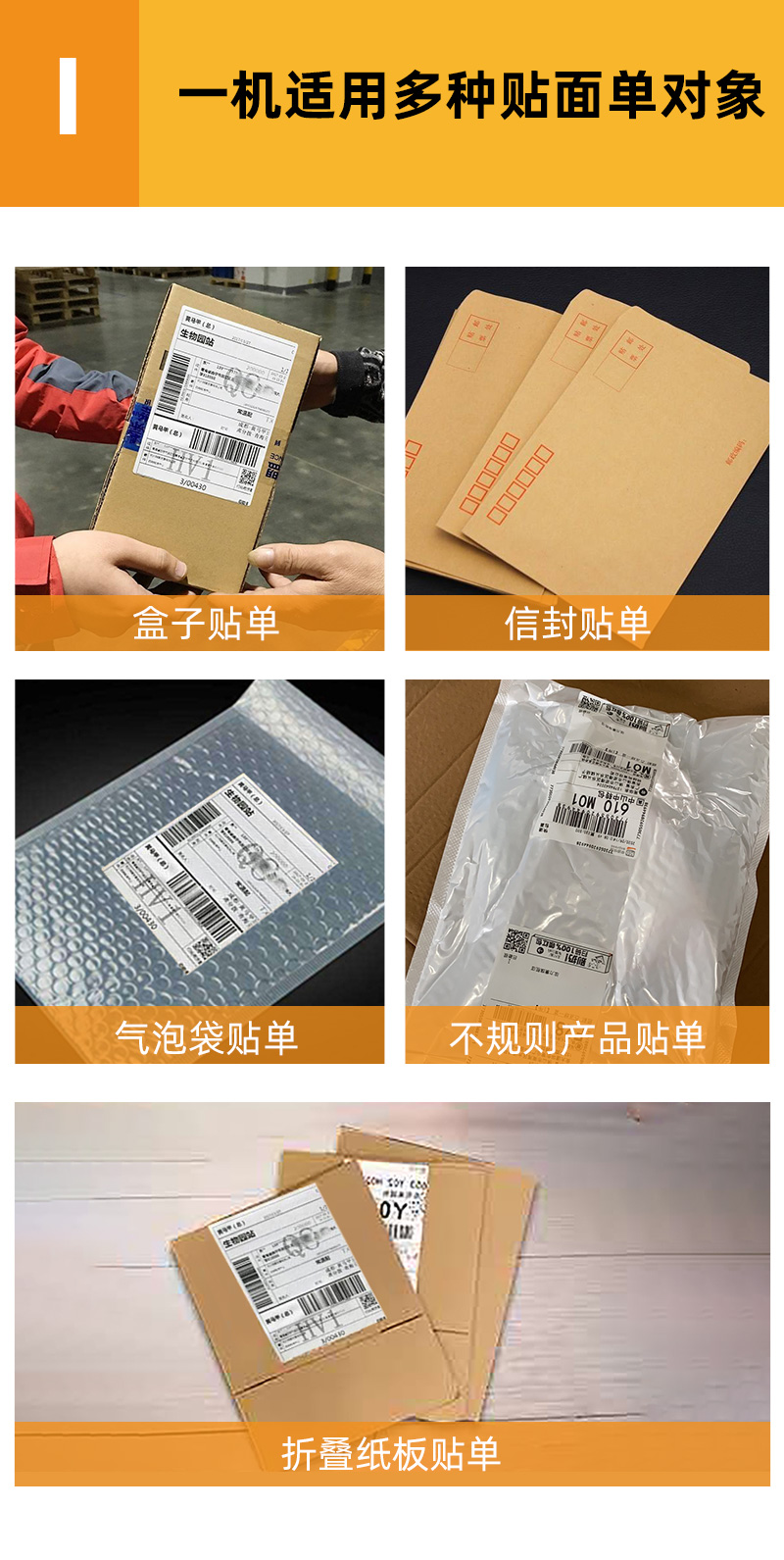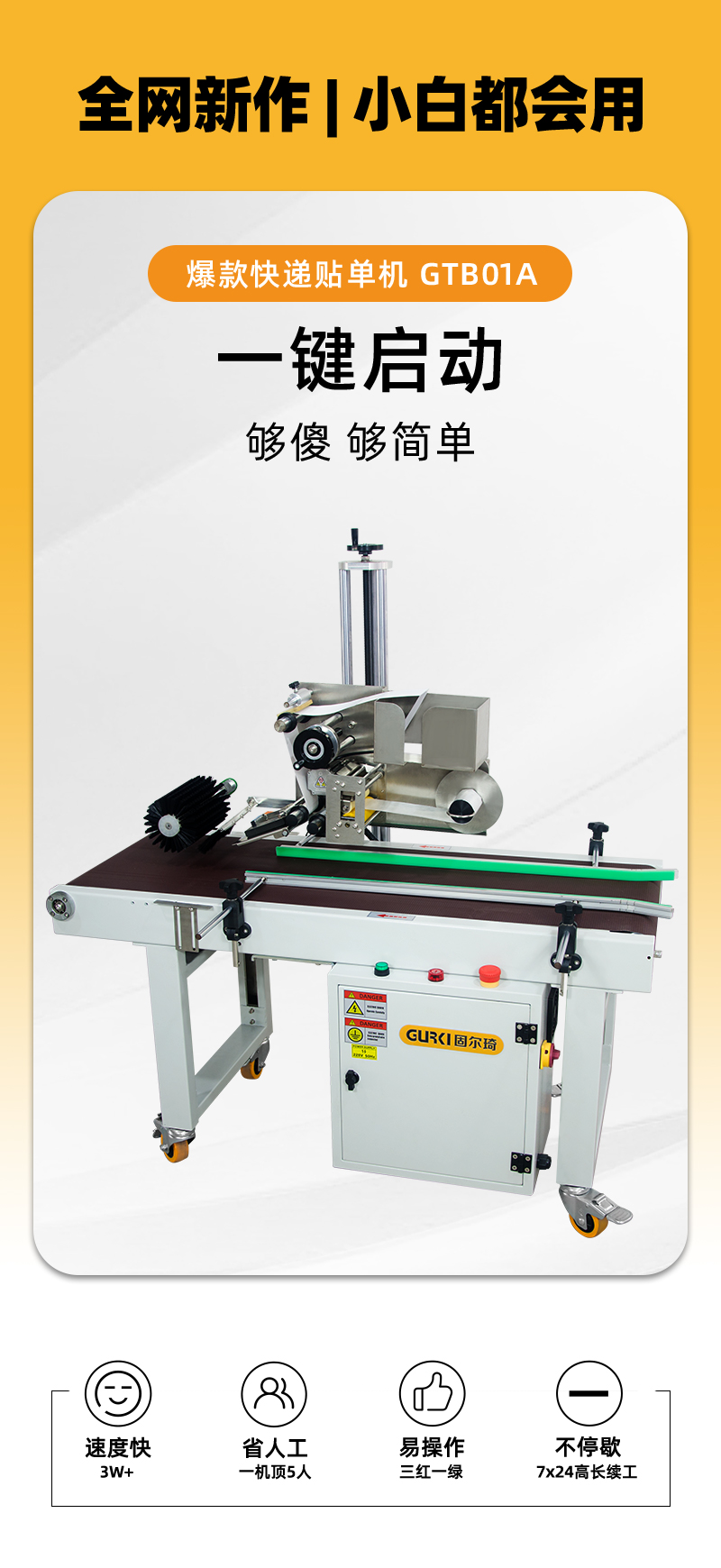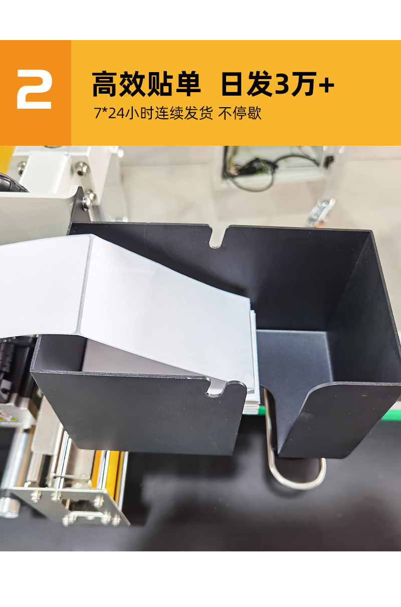 電商封箱機(jī)配套快遞貼面單機(jī),封箱貼面單效率日發(fā)8000+。具備一鍵式傻瓜操作,自動(dòng)化封箱貼面單一步完成,保養(yǎng)簡(jiǎn)單,穩(wěn)定性強(qiáng)的特點(diǎn)