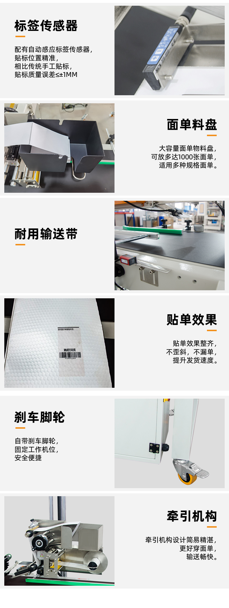 自動(dòng)快遞貼單機(jī)是我司自主設(shè)計(jì)生產(chǎn)的一款24小時(shí)無(wú)人化連續(xù)貼單作業(yè)的設(shè)備,該機(jī)具有一鍵啟動(dòng),傻瓜式操作的特點(diǎn),日貼3萬(wàn)+,操作使用體驗(yàn)更好。同時(shí),該機(jī)針對(duì)信封等較薄的證件貼面單,設(shè)有光纖傳感器,方便更加快速貼單,適用于貼各種規(guī)格的大小紙箱、快遞面袋等,可實(shí)現(xiàn)打印快遞面單后,產(chǎn)品一邊輸送一邊貼單,貼單平實(shí)、貼單位置精準(zhǔn),不傾斜,精度誤差≤±1mm。可單機(jī)使用也可配套封箱機(jī)使用,廣泛應(yīng)用于倉(cāng)儲(chǔ)、物流、電商等行業(yè)。